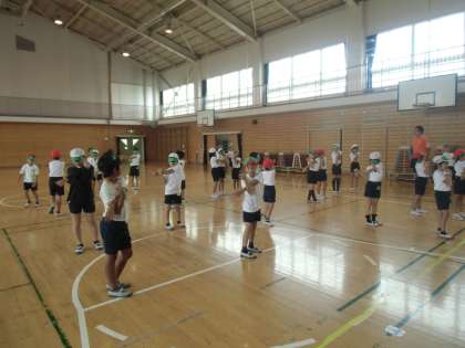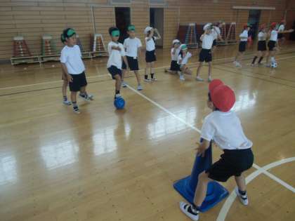 総合「広げようやさしい町」の学習で、ブラインドサッカーの体験をしました。