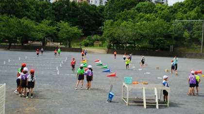 本校は八王子市教育委員会研究指定校です。児童が「できた!」を実感できる体育授業を目指しています。