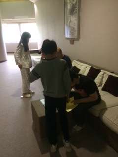 おはようございます。奥日光は、今朝も雨のスタートです。健康観察をして検温し、各班ごとに報告をしています。今日はハイキング。それまでに雨が止んでくれると嬉しいです。