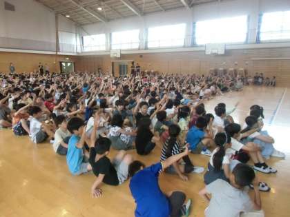 今朝は、図書委員会から図書室の使い方やおすすめの本など、体育委員会から大縄跳びのやり方説明など、2つの委員会からのお知らせがありました。