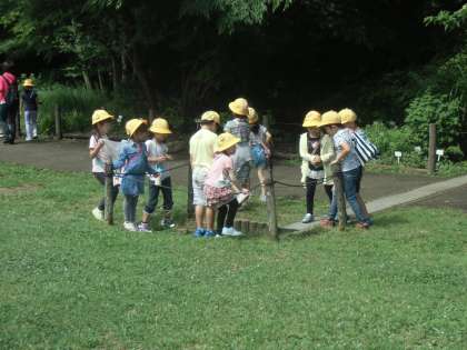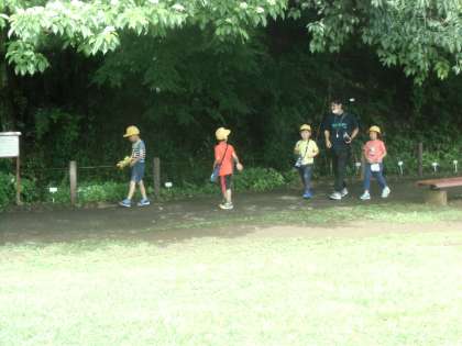 1年生活科「なつだ あそぼう」 小山内裏公園に夏探しに行きました。アジサイやバッタなど、いろいろ発見しました。