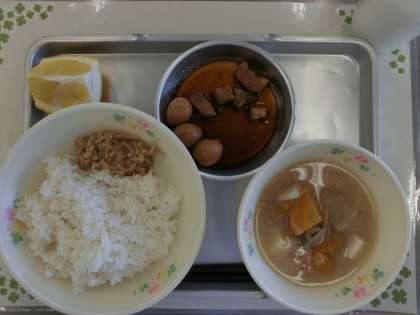 給食ではなめたけも手作りします。なめたけを調味料でぐつぐつと煮込んでとろみをつけます。味が濃くなくて、たくさん食べられます。