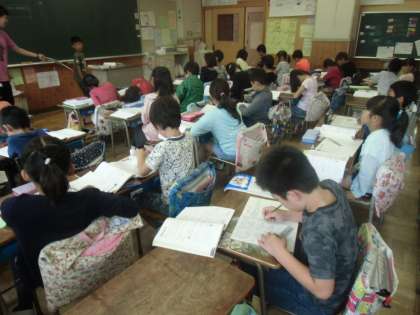 3年算数科「たし算とひき算のひっさん」 3学級5展開習熟度別の授業です。くり上がりやくり下がりの筆算の仕方について、話し合ったり繰り返し練習したり一生懸命に学習していました。