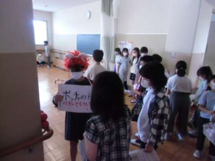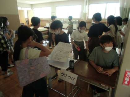 3年ぶりの子どもまつりを開催しました。3年生以上がお店を出し、前半と後半に分かれて全校で楽しみました。ゲームや謎あてなど、様々に工夫したお店に参加して喜ぶ姿、店員として受付や説明など一生懸命働く姿をみて、子どもまつりの行事のよさをあらためて実感しました。
