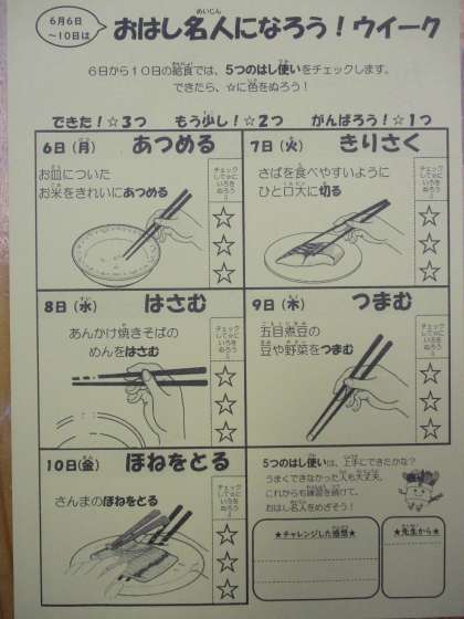 金曜日まで毎日給食のときにおはし使いをチェックして