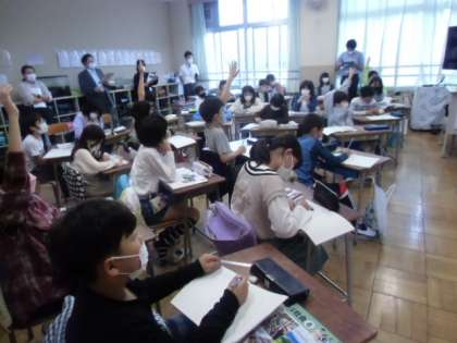 5年社会科「米づくりのさかんな地域」 教育実習生の研究授業でした。資料から新潟県の米づくりが盛んになった理由を考えたり、学習問題をつくったり、すすんで楽しく学習していました。