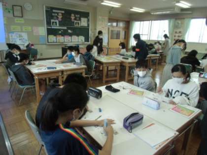 6年家庭科「朝食から健康な1日の生活を」 自分の朝食について振り返り、五大栄養素について学習してから、提示された朝食例について足りている栄養素と足りない栄養素などについて話し合いました。