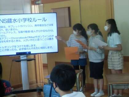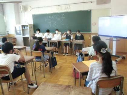 部活動体験の後に代表児童が残り、「八王子版 いじめ防止SNSルールを策定しよう」をテーマにした八王子サミットの鑓水中学校区サミットが開催されました。鑓水小学校、由木西小学校、鑓水中学校がそれぞれの学校で決めた提言を発表し、意見を出し合いました。