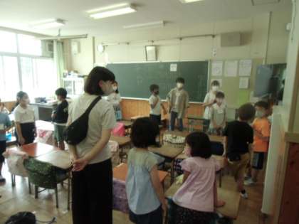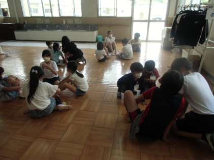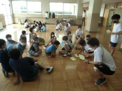 昼の時間を使って、全校でたて割り班活動がありました。1年生から6年生まで集まったグループで、ゲーム、鬼ごっこ、ボール遊びなど上級生が下級生をリードして、楽しく遊んでいました。