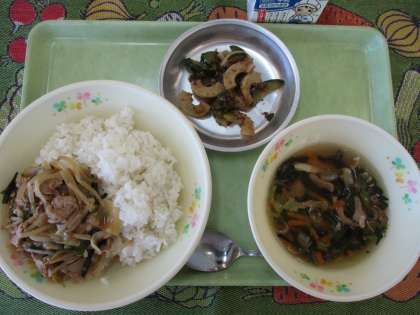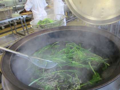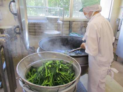 2枚目の写真は、中華スープに入れる小松菜を下ゆでしているところです。