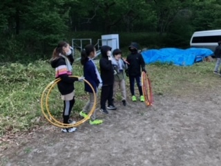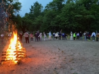 キャンプファイヤーをしました。歌,ダンス、ゲームなど、学年全体で盛り上がっていました。
