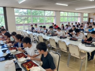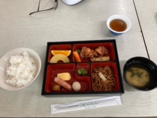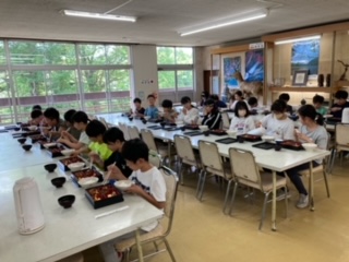 ?たくさん歩いて,お腹が空きました。昼食は,レストハウスでお弁当です。いただきまーす!