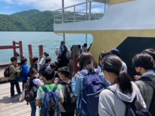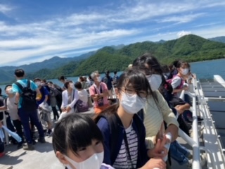 午後は、まず中禅寺湖のクルージングです。最高の景色に歓声があがりました。