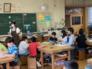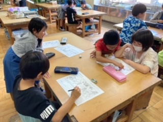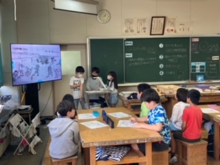 4年図画工作科「こんな声が聞こえたよ」鑑賞の授業です。鳥獣人物戯画巻をみて、カエルとうさぎのセリフを考えたり、続きを想像したりしました。