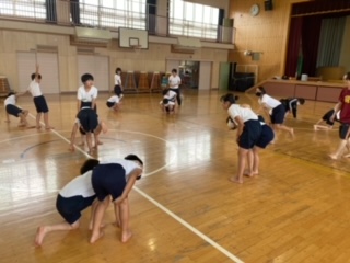 6年生が、東京都のパフォーマンス キッズ トウキヨウの出前授業をスタートしました。これから10回体育科の時に実施していきます。今日は初回で、表現することを楽しみました。