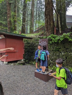 日光東照宮見学です。クラスごとに日光東照宮を守った八王子千人同人の碑から、歴史的遺産を一つ一つ見学していきます。