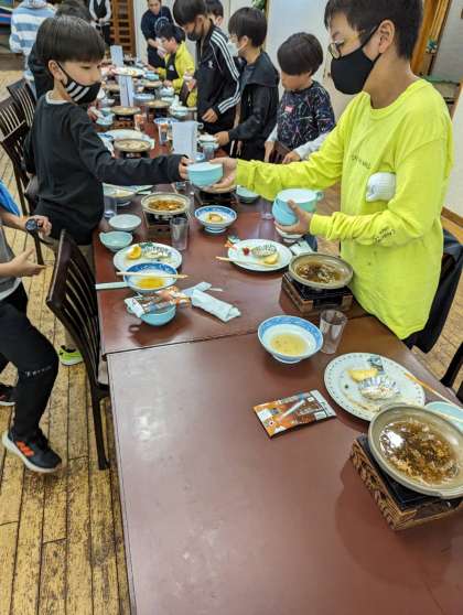 お腹いっぱい食べました。ごちそうさまの後は、みんなで片付けのお手伝いです。