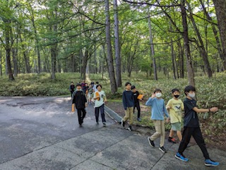 朝会、そして朝の散歩をしました。気持ちよい高原の朝を迎えました。
