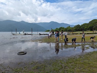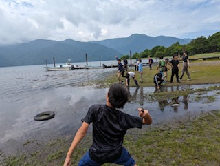 龍頭の滝から中禅寺湖までのハイキングです。菖蒲が浜では、カエル,カマキリ,魚を見つけました。