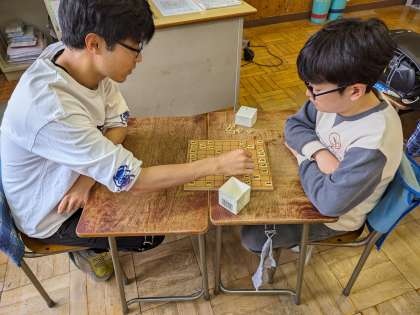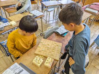 初めての4年生は駒の動かし方を確認しながら、ベテランの6年生は先生と勝負!大人も本気です。
