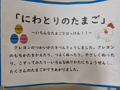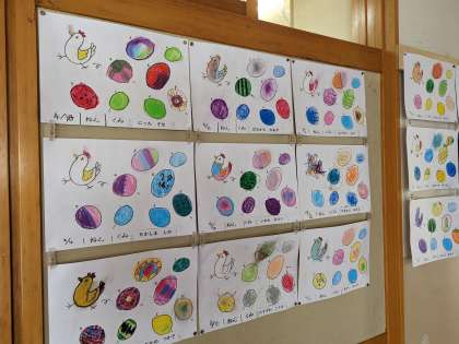 廊下にたまごがたくさん掲示されています。ご来校の際にご覧ください。