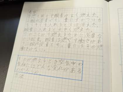 ノートを書いて、実験の準備です。必要なものを確認しています。