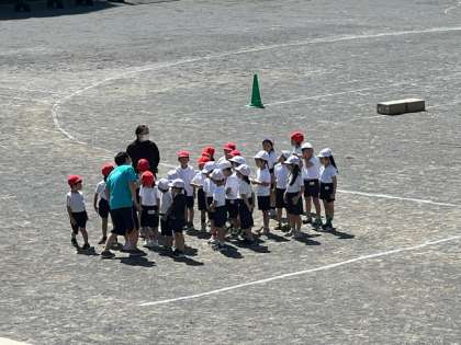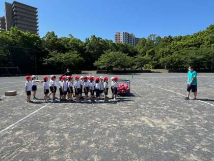校庭での体育の授業です。