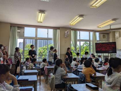 学級活動です。3組は係活動でしょうか、発表しています。保護者も真剣に聞いています。4組は保護者も一緒に相手を読むゲームをしました。盛り上がりました。