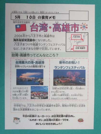 給食では、台湾の料理をアレンジしました。
