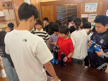 水筒に麦茶を入れてもらいます。