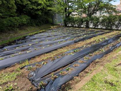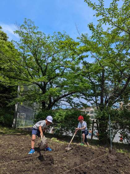 みどり広場の畑を耕し、苗を植えました。何ができるでしょうか?楽しみです。