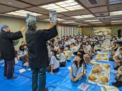栃木県の名産品、かんぴょうの原料である夕顔の実を使った伝統工芸です。作り方を教えていただきました。