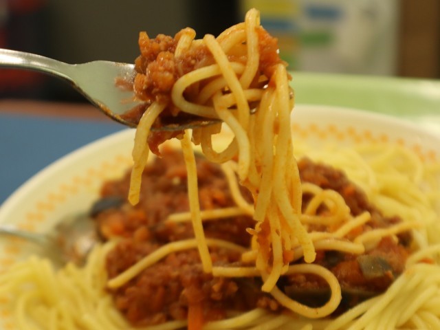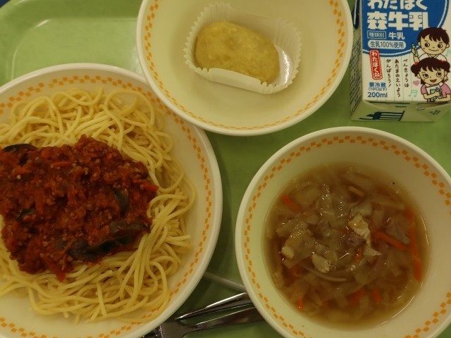 今日のメニューは、秋ナスのスパゲッティミートソースです。