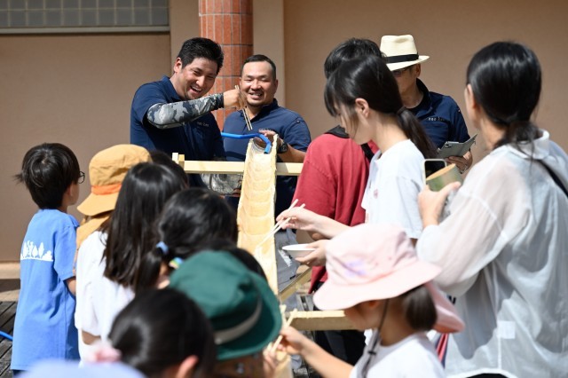 自分たちで作った道具や器で食べる『流しそうめん』は格別でした。参加した中学生は「普段できないモノづくりを職人さんたちと楽しくできました。」「自分で作ったものを使って、食べる、ということが楽しかったです。」等、話していました。楽しいとおいしいがいっぱい詰まった素晴らしい時間を過ごすことができました。
