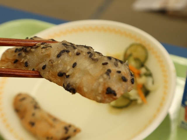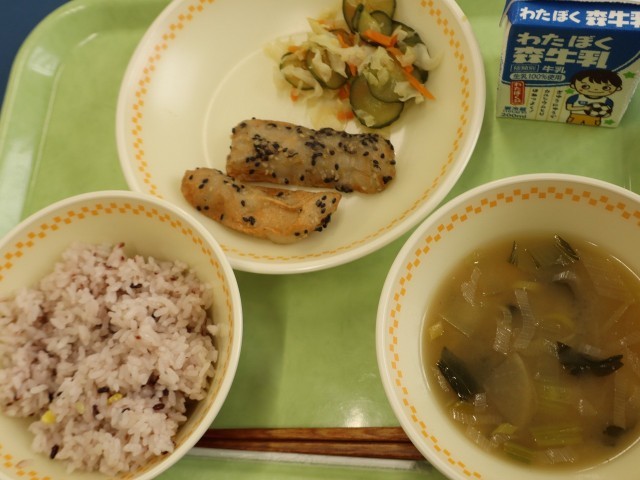 今日の給食は、「八王子城御膳」だった。ちくわのごま揚げは味が効いており、八王汁は八王子の野菜が使われており、八王子を感じた。栗ご飯は、栗の甘みがダイレクトに感じられた。野菜の和え物は、シャキシャキしていて美味しかった。来週の給食も楽しみだ。