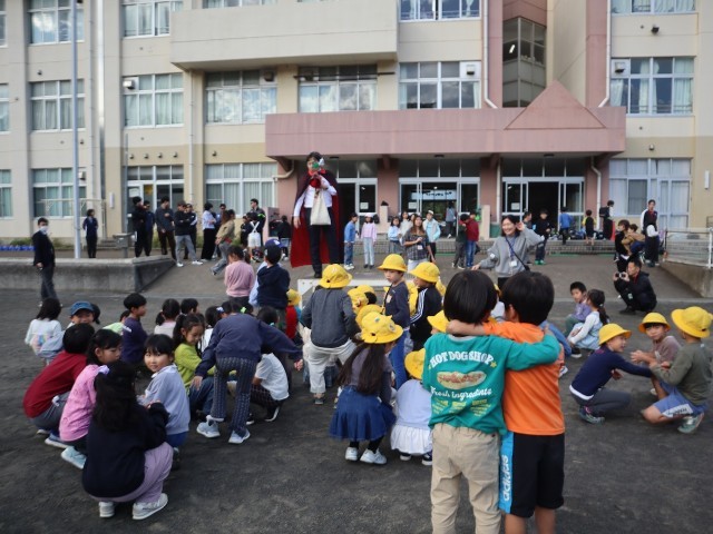 「わっはっはっは 諸君たち、楽しんでもらえたようだな。今回は3、4年生に不覚をとったが、来年は我がハンター軍団を鍛えなおして、再び君たちの前に現れるであろう。最後に一つだけ注意しておく。私やハンターのサインを転売するのはやめてくれたまえ。11月23日(日・祝)の「こどもガレージセール」でも禁止だぞ! ではまた会おう。わっはっはっは」
