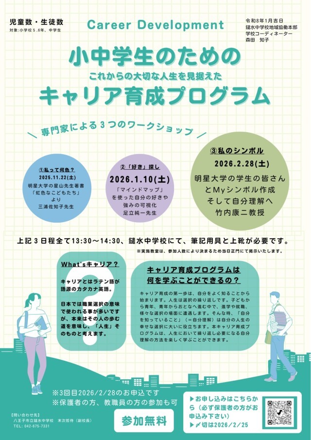 2026年2月28日(土) 13:30-14:30 鑓水中学校にて