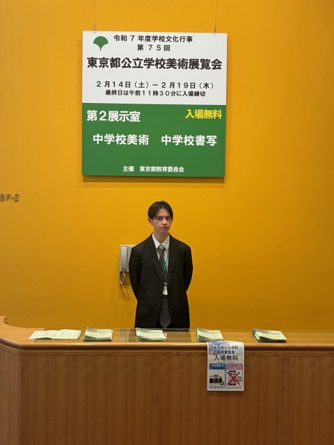 上野の東京都美術館で2月15日から19日まで、「東京都公立学校美術展覧会」が開催されています。鑓水中学校からは書道と美術「手のデッサン」の作品、計3点が八王子市の代表として展示されています。ぜひ足をお運びください。