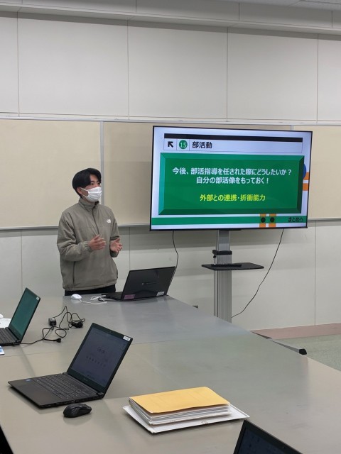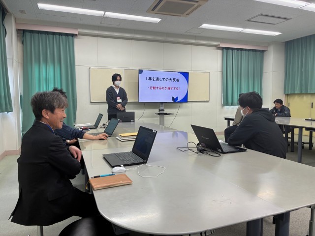 1年間の校内初任者研修のまとめとして、初任者の2名が1年間で学んだことを報告しました。