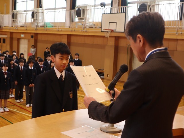 令和7年度の修了式を行いました。1、2年生の代表生徒が登壇し1年間の学習を終えたことを証明する修了証を受け取りました。厳粛な雰囲気で1年祖締めくくりができました。
