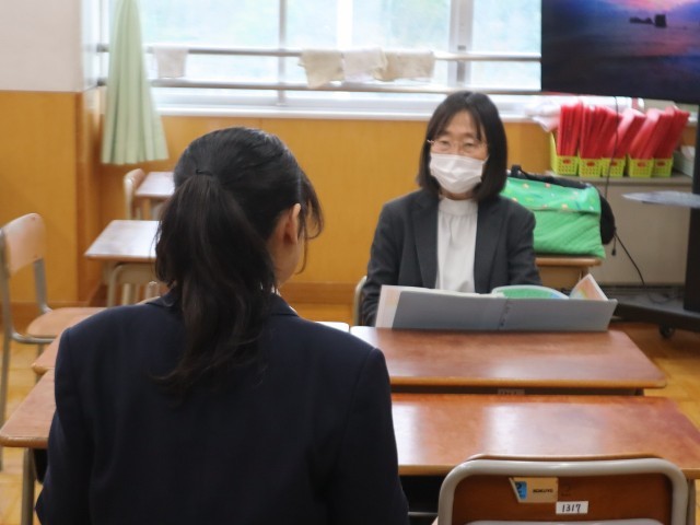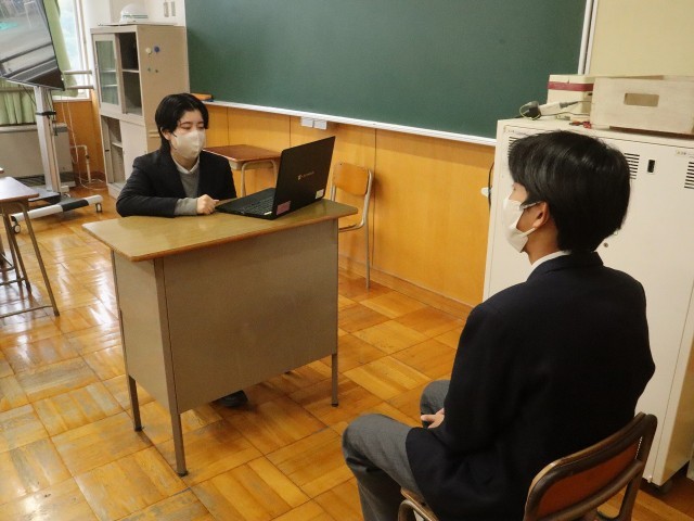 学年末の評価評定質問教室を行いました。希望する生徒は、各教科の担当教員から、自身の取組の良かった点や課題を聞いていました。