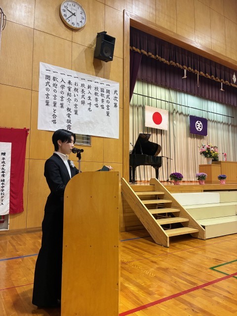 これからの中学校生活3年間で、「球根から芽を出し、茎をのばし、蕾を付け、花が咲く」ように、より一層の成長を期待しています。