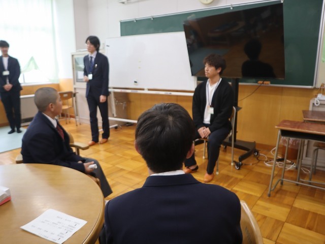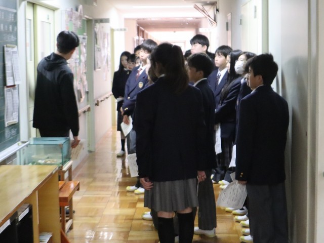 1年生が4校時に校内巡りを行いました。今年度は上柚木中学校(※特別支援教室「あじさい教室」の拠点校。鑓水中学校は木・金曜日が授業日です)「あじさい教室」のj巡回指導教員4名に鑓水中学校に来てもらって「あじさい教室(特別支援教室)」の説明をしてもらいました。