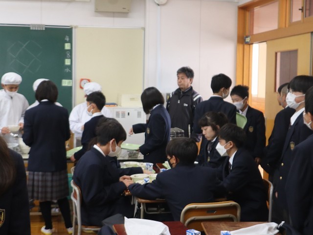 校内巡りと給食準備 1年生