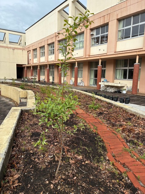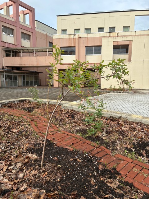 生徒会が中心となって作っている中庭のブルーベリー畑に、元学運協会長、元学運協委員、現学運協会長の方々に大きなブルーベリーの苗を植えていただきました。昨年の秋に植えたブルーベリーの約2倍の大きさです。今年実がつくそうです。いつもありがとうございます。