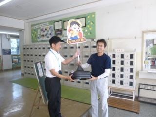 本日、下柚木町会長さんが来校し、交通事故防止の看板2セットを、町会から学校に寄贈してくださいました。車の運転手さんに、児童に気を付けて走行するよう注意を促す看板です。本校の子どもたちは、地域の皆様に大切にされ、いつも見守られています。これからもどうぞよろしくお願いいたします