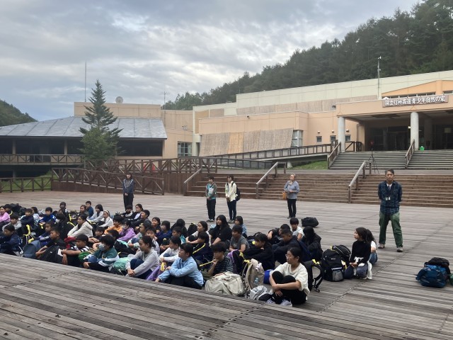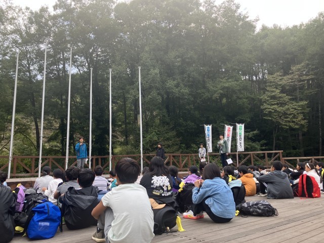 高遠青少年自然の家に到着しました。お世話になる宿舎の方にご挨拶をして、開校式を行いました。素晴らしい態度でした。この自然の家で、素敵な思い出をたくさんつくりましょう!「よろしくお願いします!」