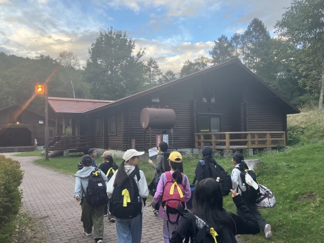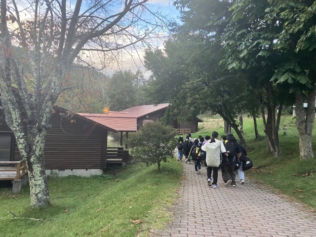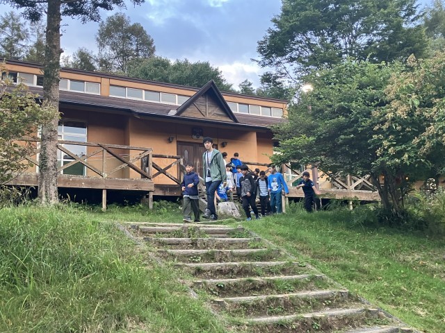 それぞれの宿泊棟に別れ、避難訓練と荷物整理を行いました。これから始まる宿泊生活に期待が膨らみますね。それぞれの係の仕事をとおして、自分の役割を果たす大切さを学びます。
