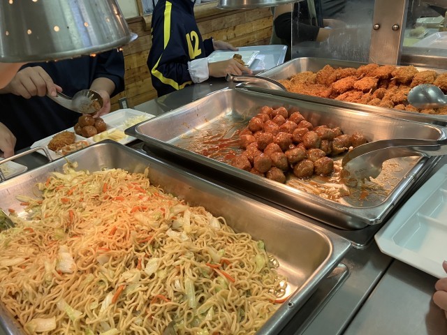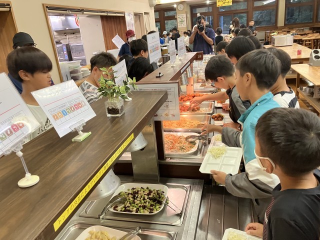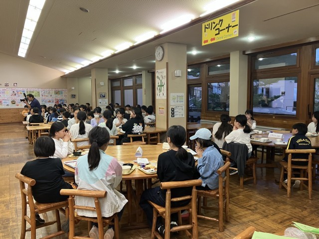 夕食の時間です。美味しい食事を前にして、友達との会話が弾みます。入笠山のハイキングでお腹もペコペコです。感謝しながらたくさんいただきましょう!