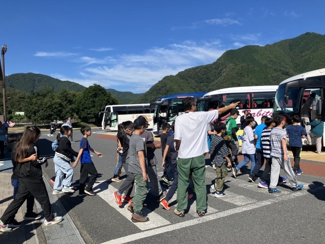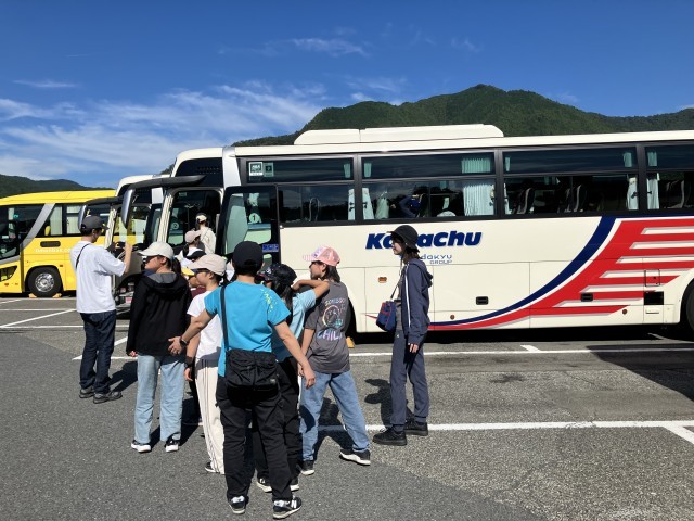 談合坂サービスエリアで休憩をとりました。子供たちは、バス酔いもなく、みんなとても元気です!